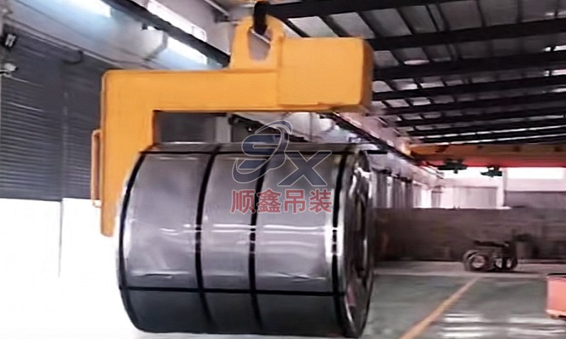 翻轉(zhuǎn)吊具通過機(jī)械剪力原理,對(duì)立式擺放的卷鋼進(jìn)行單邊抓取,來完成卷鋼的裝卸,當(dāng)改變重力點(diǎn)時(shí),可以對(duì)卷鋼進(jìn)行翻轉(zhuǎn),作業(yè)時(shí)不傷鋼卷。其吊耳采用加厚處理,焊縫飽滿牢固、延長使用壽命。
